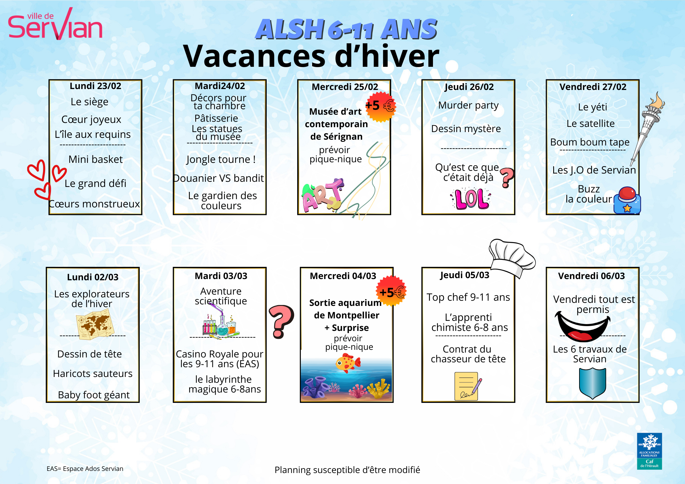 Contact : 04.67.39.29.69Courriel : enfancejeunesse@ville-servian.fr